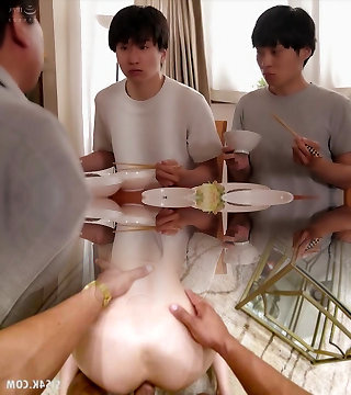 Brunette Japanese Cockslut Gets Fucked By Three Horny Guys
