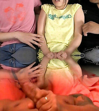 Pussy and Facial Bukkake for skinny Asian Teen by 20 old Guys at Group Sex