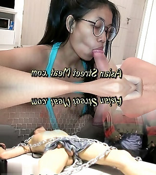 'Chinese student gets her glasses full of cum after sucking a fuckpole'