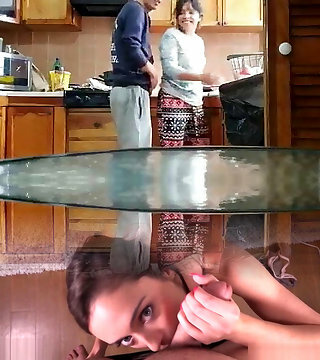 I like to eat sitting on the guy's legs because it excites me that my rub the pussy