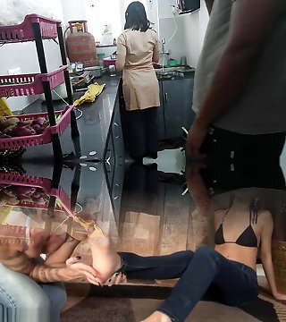 The girl got ready to go to college and was cooking while the neighbor nailed her.