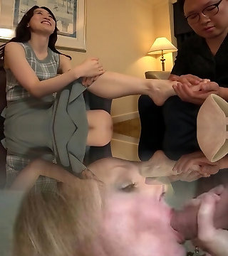 Cute Japanese damsels let a guy lick their juicy holes in front of a ultra-cute titsjob.
