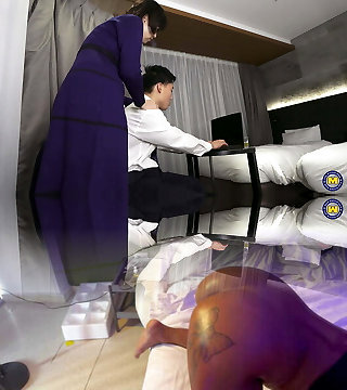 Hot gangbang in a classic asian restaurant fucking hot milf