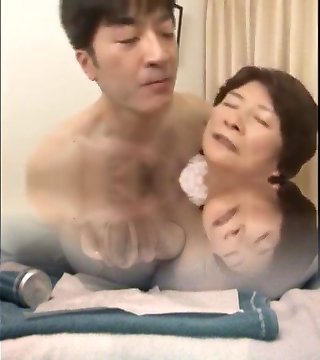 Amateur Japanese granny with juicy tits gets a big creampie finish