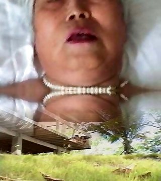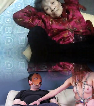 Fat Chinese Grannie In A Red Bathrobe On Webcam Skype