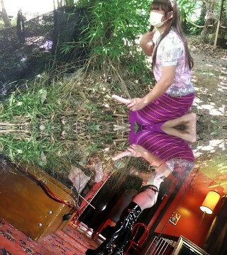 Skinny thai tranny pleasures herself